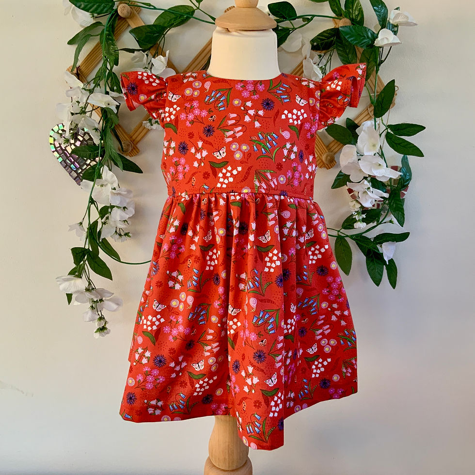 Girls Red Flutter Sleeve Floral Dress | 0-10 years | 100% cotton